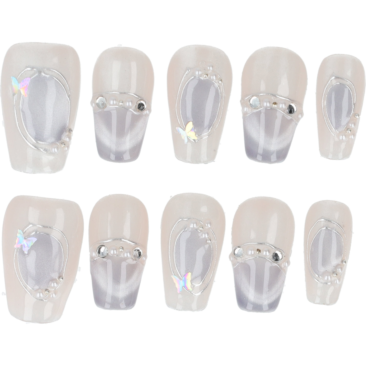 Handmade Press on nails Crystal Elegance Gray Short